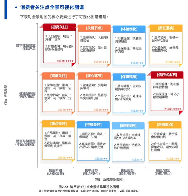 在“消费者关注点全景地图”中,复旦大学保险消费者权益保护研究团队也对行业中的头部保险机构进行了横向对比和全方位测评,所入选的行业优秀服务案例对行业具有参考和样本意义。