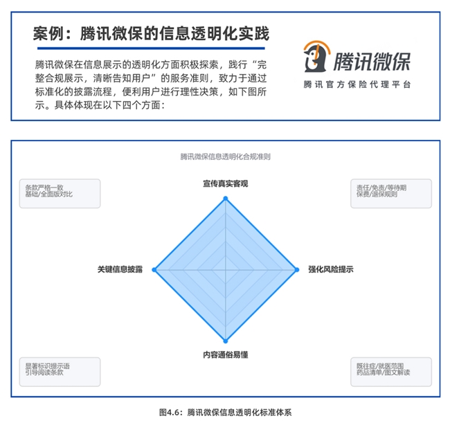 腾讯微保在信息展示透明化方面积极探索,践行“完整合规展示,清晰告知用户”的服务准则,致力于通过标准化披露流程,帮助用户做出理性决策。